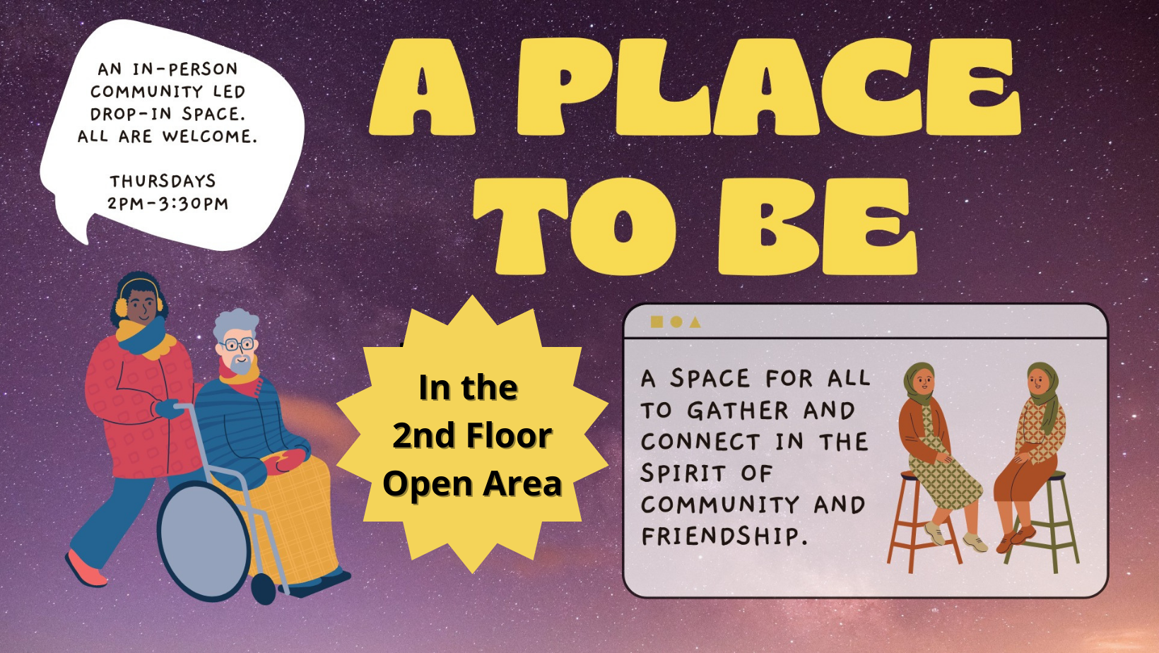 Please join us on the 2nd floor open area at the Main Branch every Thursday from 2:00 p.m. - 3:30 p.m. for pleasant conversation, snacks, and coffee. Belonging Brant is proud to host this community drop-in space where you can come and make it what you wish. For the first time, we have a special community member hosting an art space during A Place to Be! Come out to use free art supplies and get creative with us.